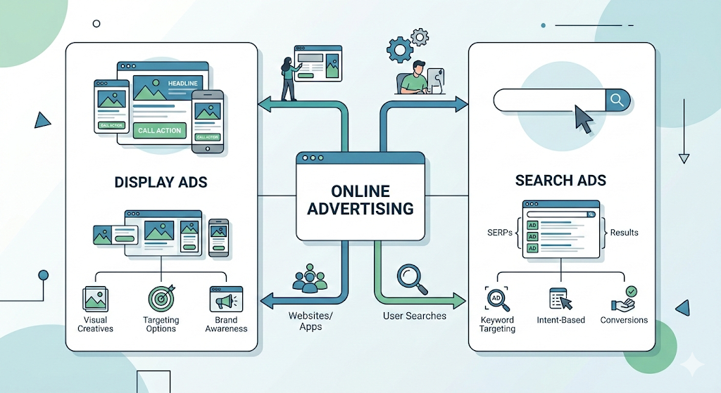 이 두 광고 방식은 광고가 노출되는 방식과 사용자 행동 구조가 다르기 때문에,