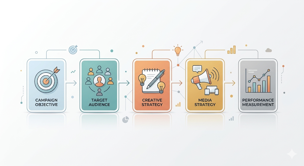 실무에서 광고 캠페인은 보통 다음 단계로 진행된다.